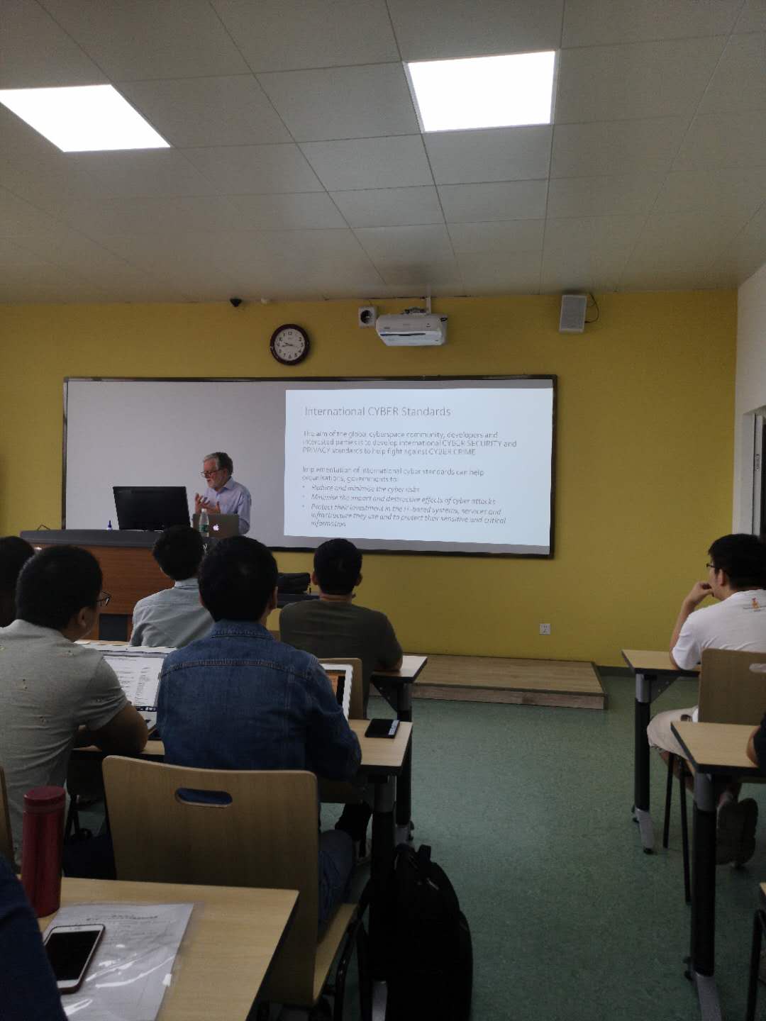 Humphreys教授用他在信息安全和国际标准化领域的长久经验和深刻认识,为永利官网师生带来了一场内容丰富的学术报告,不仅拓宽了同学们的国际视野,也加深了大家对网络空间安全的认识。报告在热烈的掌声中结束。