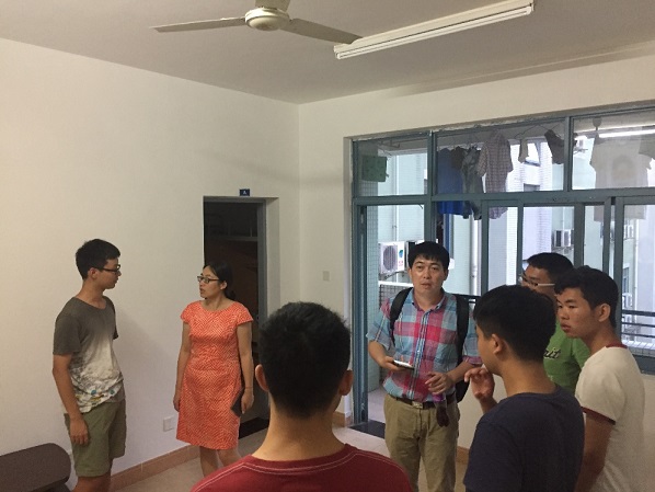 9月9日晚7点30分左右,黎红友老师带领的慰问团来到了永利集团88304官网新生的宿舍楼。慰问团一间一间地走访寝室,亲切询问了新同学的具体情况,黎红友老师为大家介绍了开学典礼、年级大会的具体时间、地点和注意事项。并向新入学的同学表示了欢迎。同时,慰问团还就同学们关心的问题,如寝室的门禁,校园卡的使用,学院的团委学生会以及其他社团情况做了耐心细致的解答。
