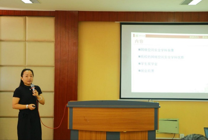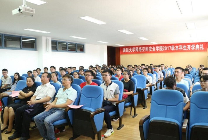 随后,常务副院长陈兴蜀教授以习近平总书记发表的重要讲话为切入口,引出当今世界网络空间安全人才的巨大缺口以及该专业发展的无限前景。并向同学们介绍了学院在政府与社会的支持下拥有丰富的资源,将会为同学们提供良好的机遇。陈兴蜀老师最后向新生提出了几点希望,鼓励同学们在具有扎实的专业基础上更要具备家国情怀,敢于与网络黑产对抗,真正成为对国家和社会有用的栋梁之才。