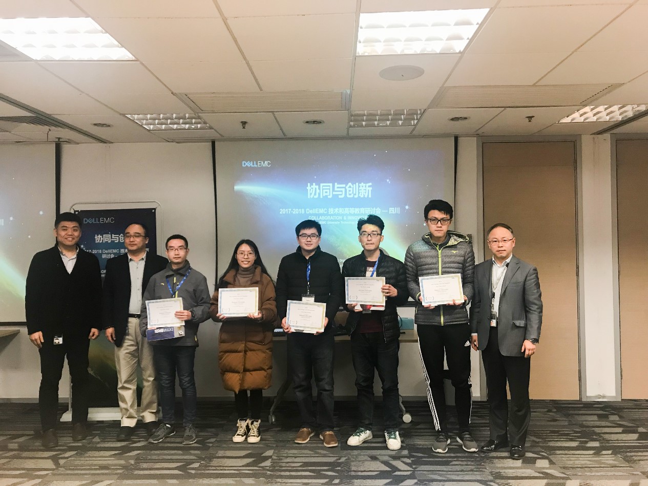 2018年1月15日,由Dell EMC中国卓越研发集团主办的高校黑客马拉松竞赛在Dell EMC中国卓越研发集团成都研发中心举行。以黄诚为指导老师,Web攻击与检测技术实验室的龙啸、彭嘉毅、邱瑶瑶和高健同学组成的永利集团88304官网代表队参加竞赛,与永利集团88304官网计算机学院,永利集团88304官网电子信息学院,西南交通大学和成都信息工程大学的代表队展开精彩的较量。经过一上午的比拼,永利官网代表队伍一路领先,战胜其他代表队伍,勇夺第一名!