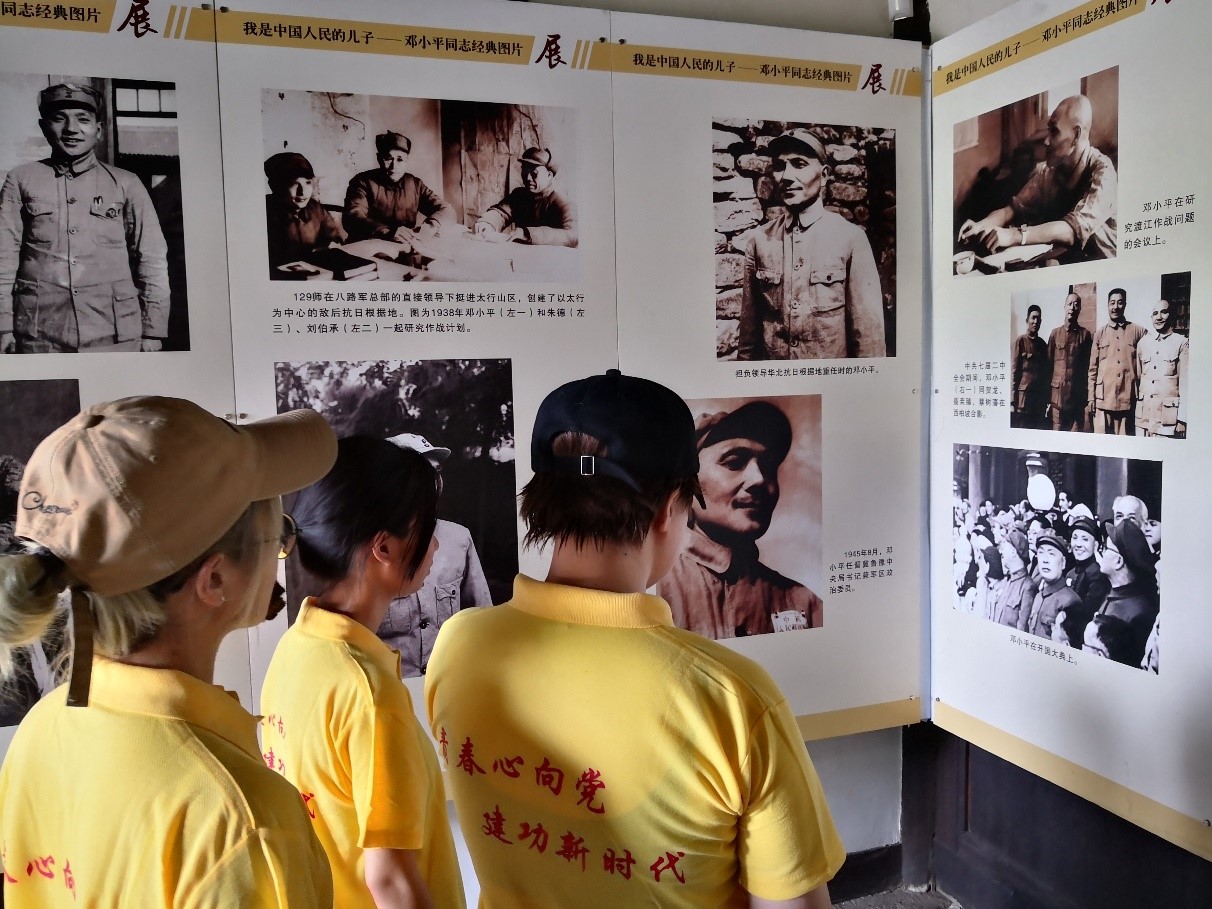 8月25日下午,经过数小时的长途跋涉,社会实践团队终于抵达了“邓小平故里”红色纪念景区。团队成员首先对邓小平故居陈列馆开展调研活动,通过展陈的物品与影像资料,全方位再现了邓小平同志辉煌的一生,更能体会老一辈革命家们的奋斗精神。走过一段蜿蜒的小路,便是“邓小平缅怀馆”,缅怀馆展览主题为“小平,您好”,意在突出展示政坛之下的平民邓小平,表达“人民领袖人民爱”。整个展览是在邓小平故居陈列馆基本陈列《我是中国人民的儿子》基础上,对邓小平人格魅力的完整补充,让同学们更加了解他的生活、他的情感、他的世界。