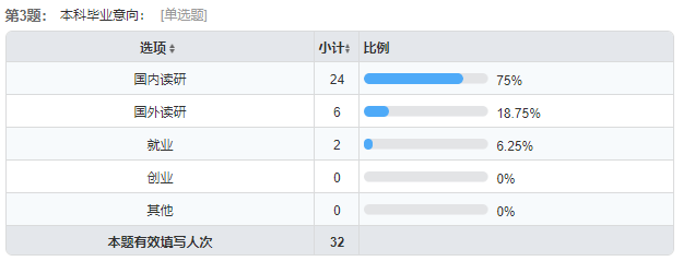 互动答疑结束后,为了进一步完善学院转专业工作,学院设计专门问卷,通过同学们填写所在学院、毕业意向和开放式提问等分析转专业同学的学生特征,期望通过问卷调查方式进一步优化学院转专业工作的人才选拔机制,提升学院人才培养能力。