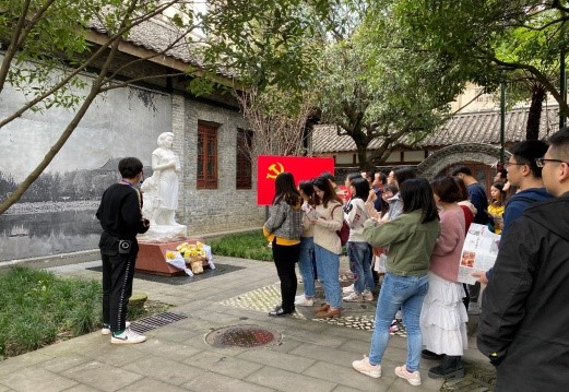 当日早上10:00,永利集团88304官网领导和研究生党员在江姐纪念馆门前集合后一同入馆。一进门,江姐的雕塑肃然在前,她手捧着一本教材,面色从容自信,让我们瞬间感受到了江姐的光辉形象。