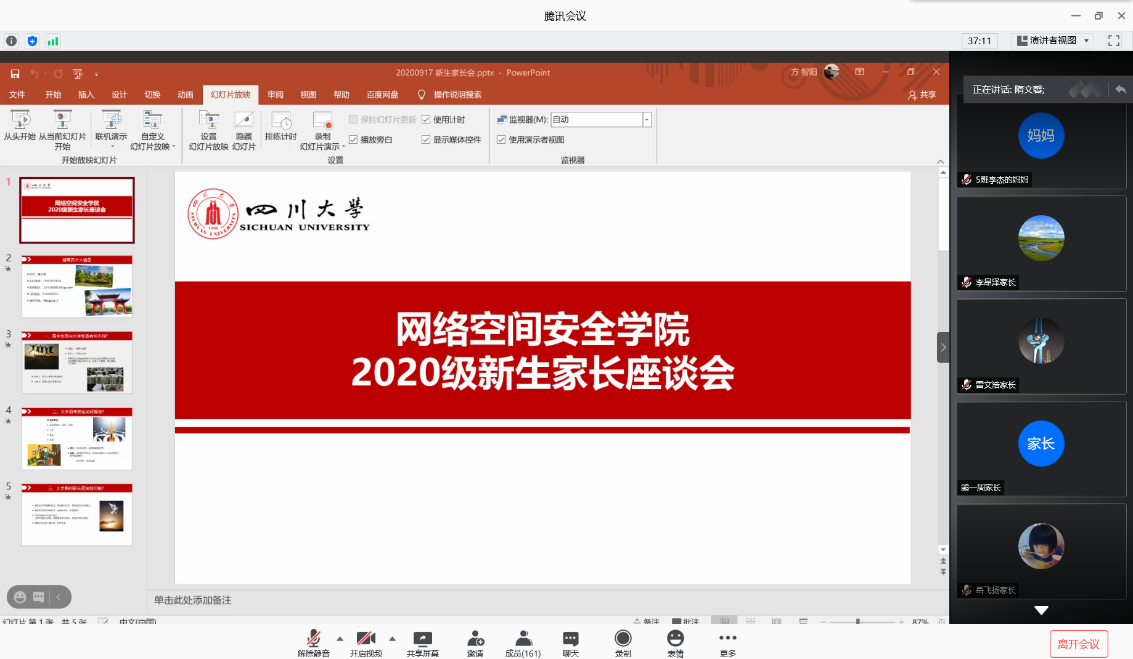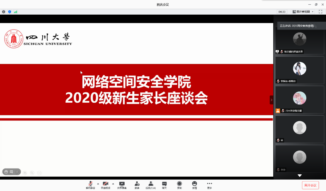 在本次会议中,老师们向家长们普及相关知识的同时,也给予了家长们对孩子专业学习、校园生活、未来发展等方面的建议,并在提问环节详细解答了家长们的问题,消除了家长们对孩子们独立生活产生的顾虑或因疫情而产生的种种担忧。此次会议极大地增加了家长们对网络空间安全专业的认同,更增加了家长们对孩子在学校能够得到悉心培养的信心。