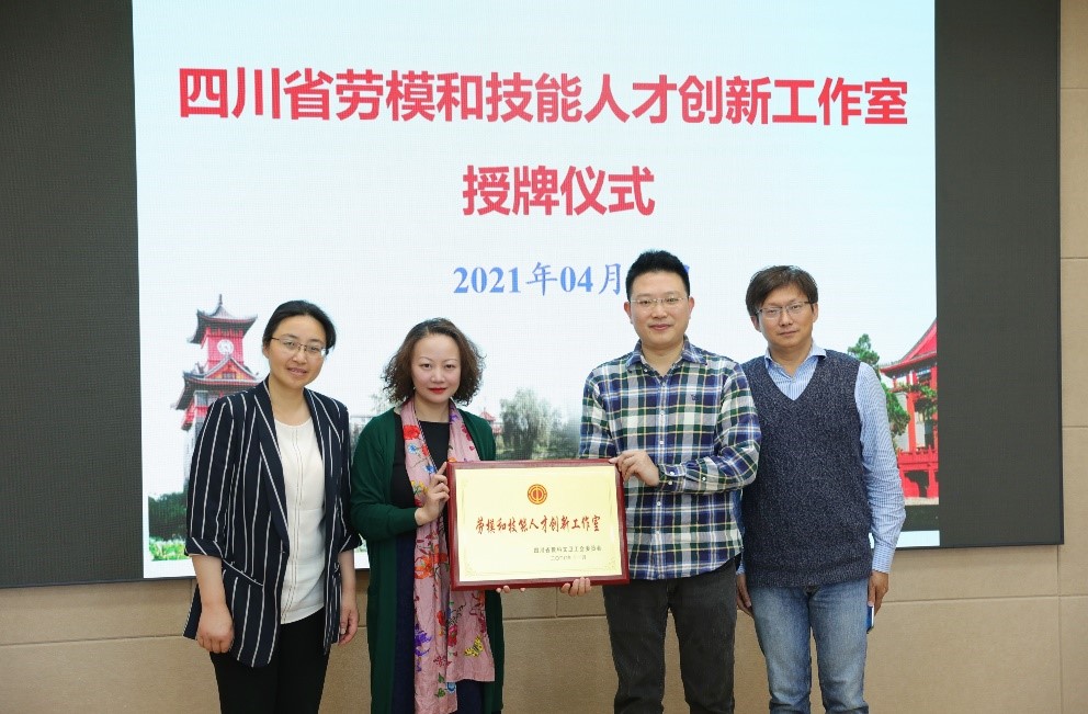 4月29日,校工会副主席冷泠一行到永利官网为杨进老师获批的四川省劳模和技能人才创新工作室授牌,学院副院长兼支部书记秦燕、副院长杨频参加授牌仪式。