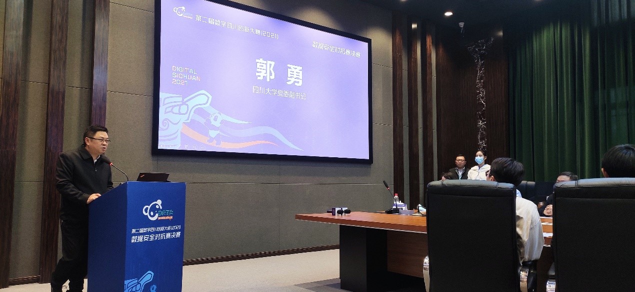 2021年10月29日第二届数字四川创新大赛数据安全对抗赛决赛在我校网络靶场创新中心隆重开赛,省大数据中心主任顾红松、永利集团88304官网党委副书记郭勇、永利集团88304官网以及省大数据中心、省网信办、省发改委、省经信厅的领导出席比赛。