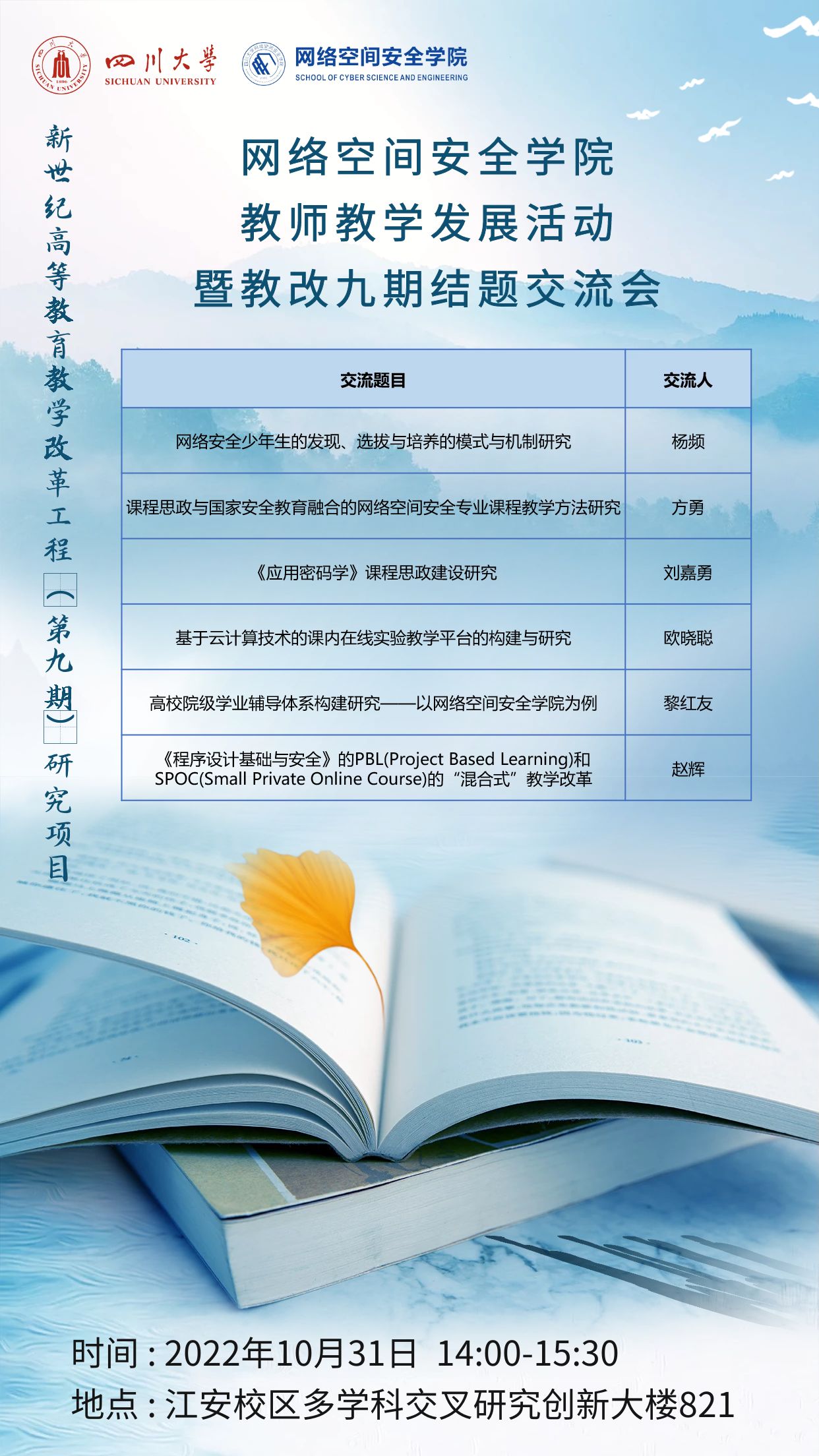 教学改革是教育改革中至关重要的组成部分,通过教改项目的申报和研究,引导教师对本科教学课堂革命及教学模式创新的深入思考,通过项目在具体教学工作中的实践应用,产出具有彰显度的教学成果,从而不断提高永利官网整体的教育教学水平,为培养高水平网安人才奠定了坚实的基础。