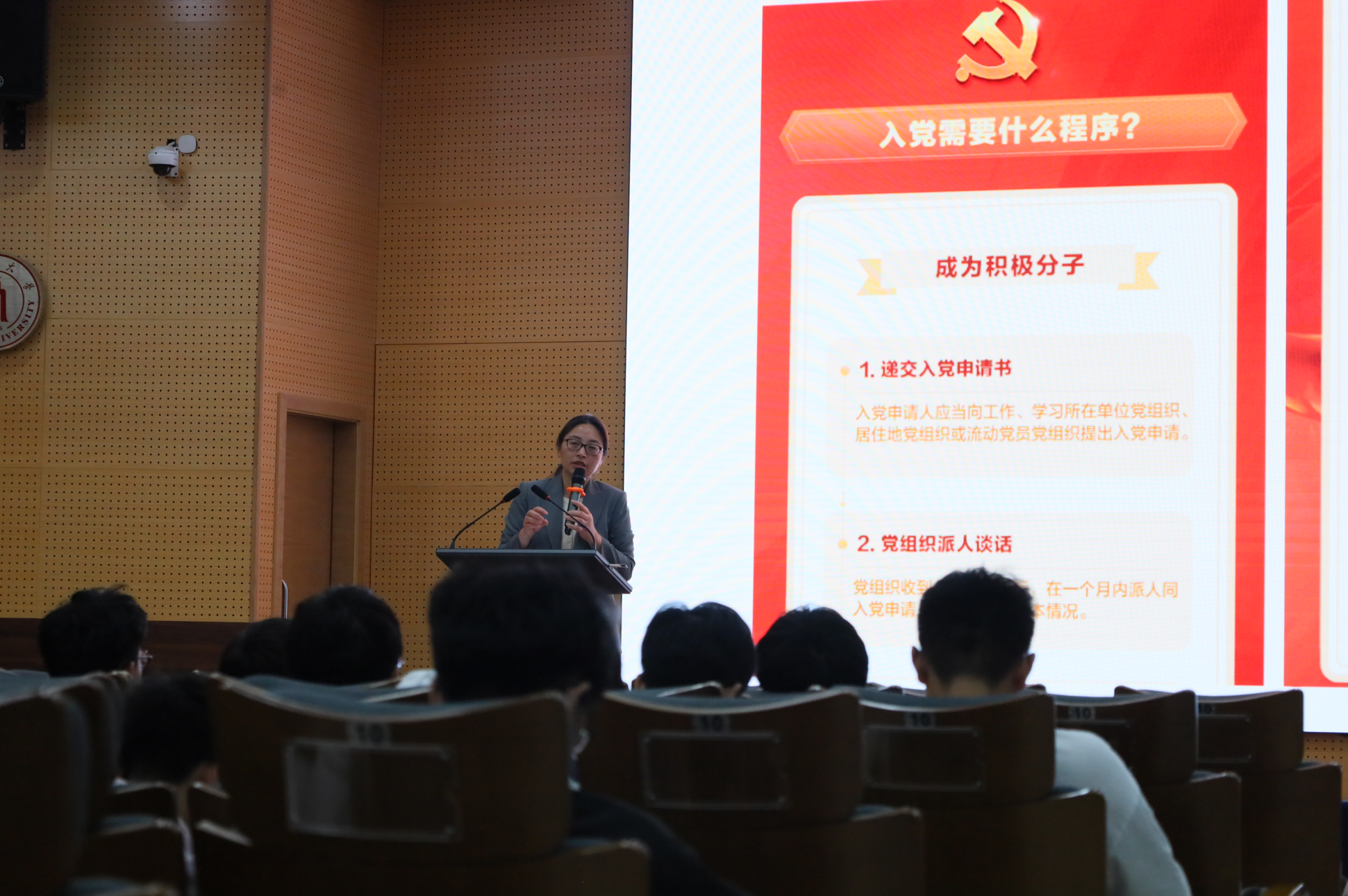 2022年10月13日,在多学科交叉大楼一楼报告厅,永利集团88304官网党总支书记为2022级同学讲授党课。辅导员张梦老师主持,2022级全体同学参加。