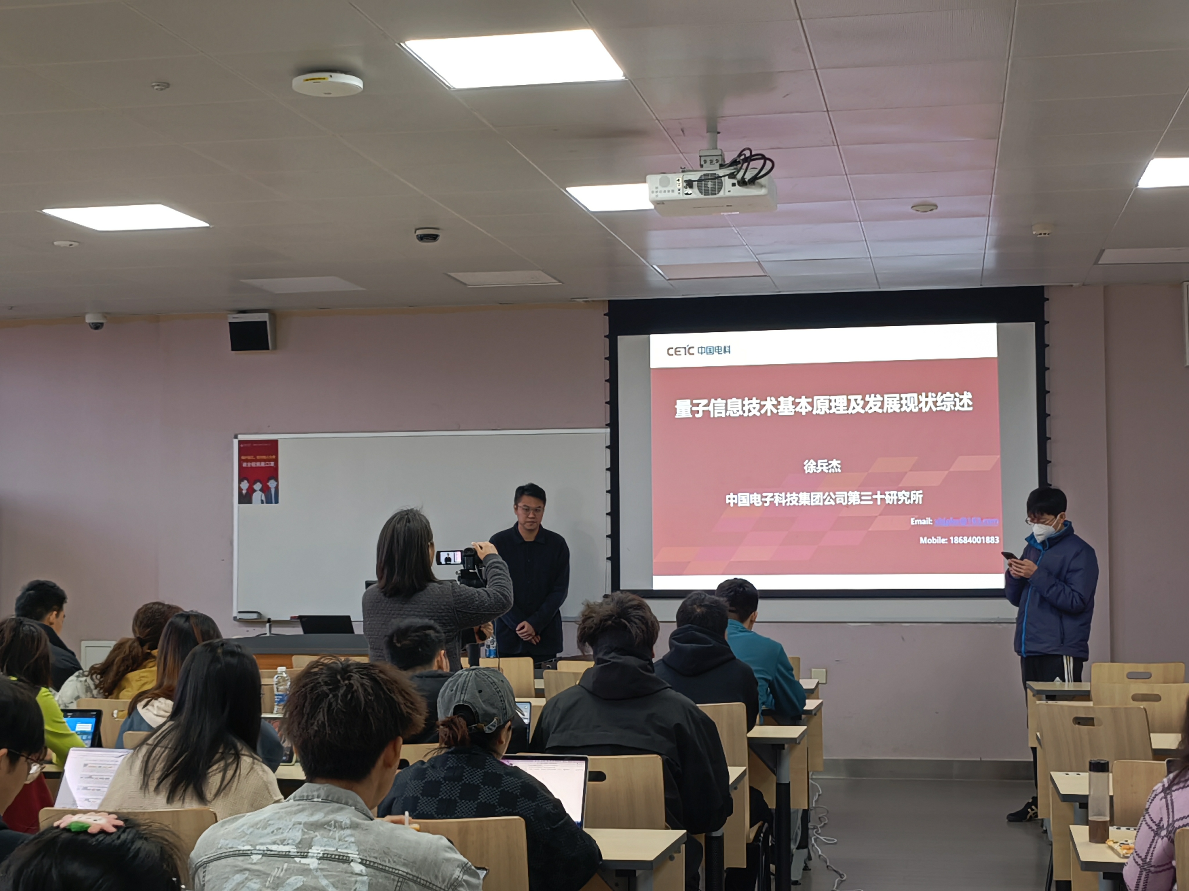 2023年3月13日上午,中国电子科技集团公司首席专家、三十所量子保密通信领域总师徐兵杰研究员为永利官网电子信息专业硕博士生开展了题为“量子信息技术概述”的专题讲座。本次讲座由永利集团88304官网党总支副书记兼副院长张意教授主持。