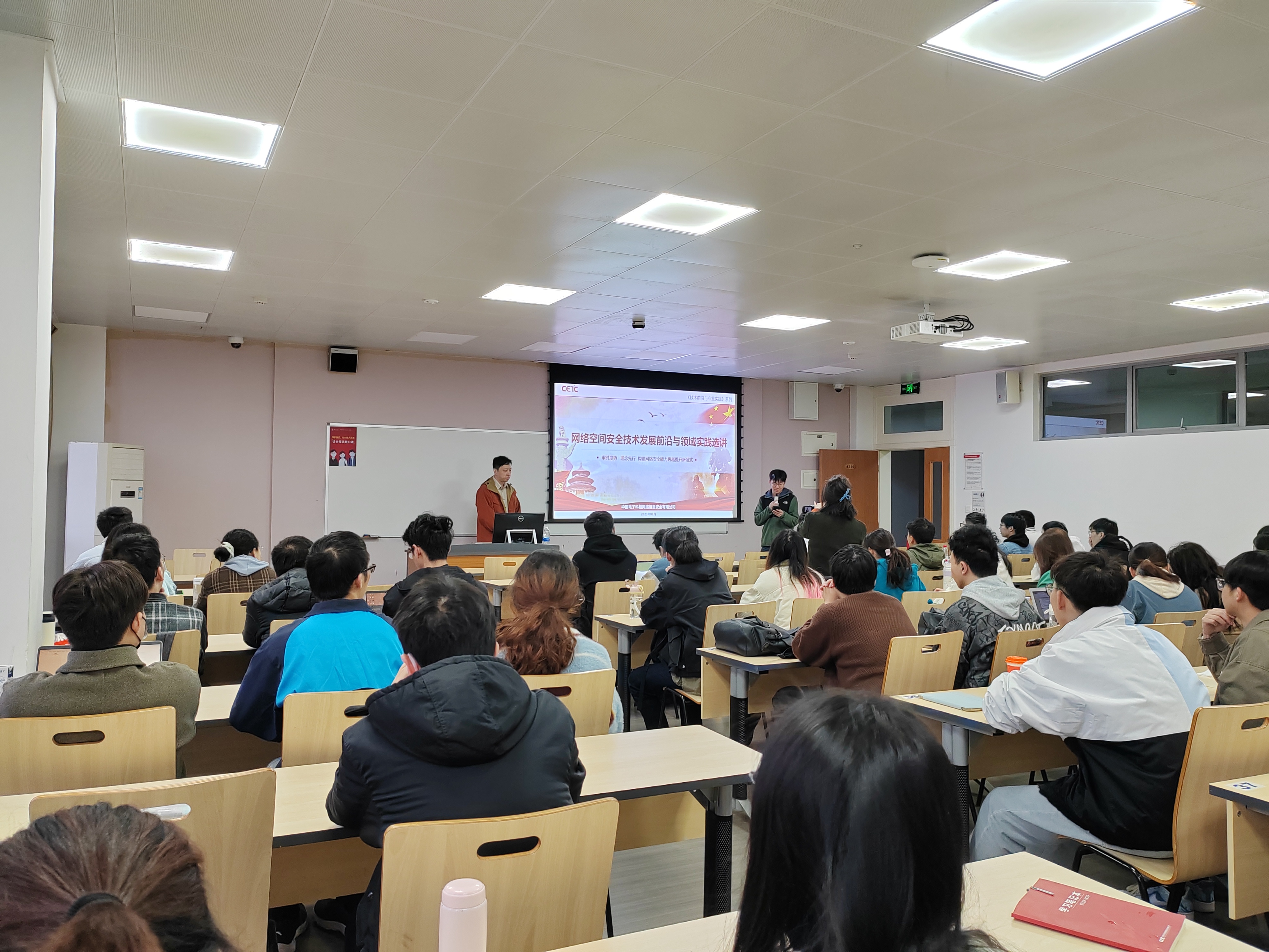 陈研究员从网络空间安全定义、安全威胁、安全理念、安全体系、安全制度等领域出发,简要回顾和综述了网络空间安全的发展历程、结构、特点和趋势,在揭示新时期复杂交织风险条件下的网络空间安全新内涵、新要求的同时,结合场景案例与同学们探讨了泛在化、适用化、数据化、服务化、语义化等网络安全前沿技术的发展新方向。