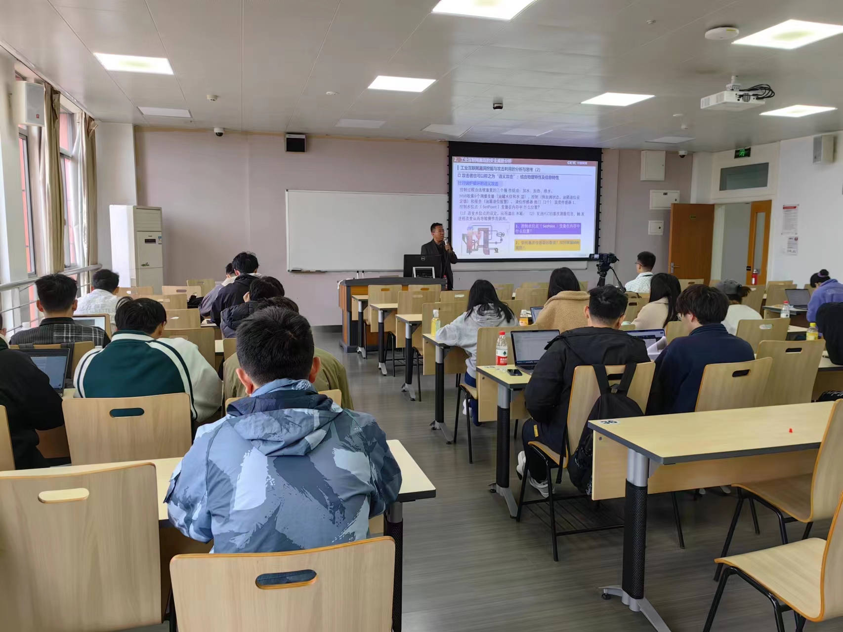 兰研究员针对报告主题与同学们进行了深入的探讨和交流,加深了同学们对工业互联网信息安全与应用技术的认识,经过本次讲座的学习大家受益匪浅。在同学们热烈的掌声中,本次讲座圆满结束。