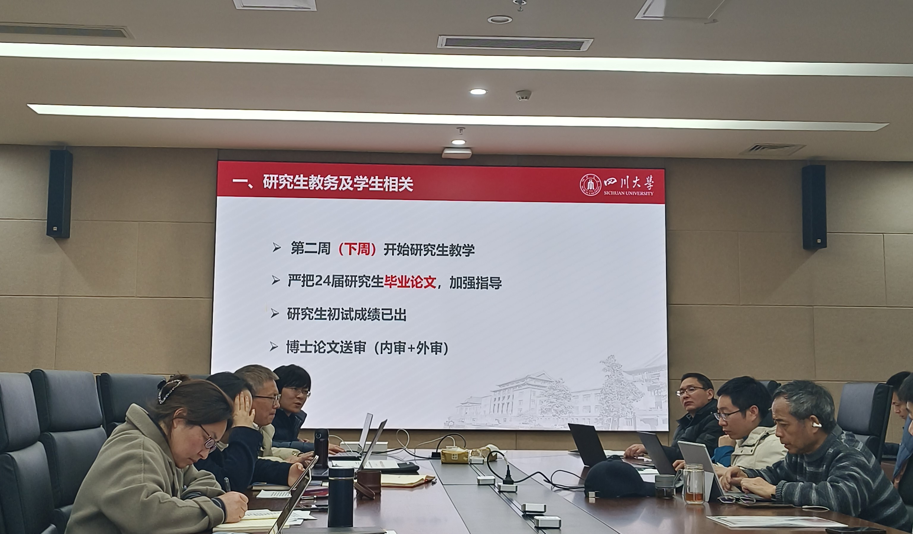 2024年3月1日下午,永利官网在江安校区多学科交叉研究创新大楼821会议室召开学院新学期工作布置会,学院领导班子成员和全院教职工参加大会,会议由党总支书记秦燕主持。