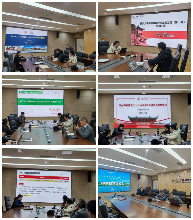 接着,永利官网5位项目负责人陈兴蜀教授、王海舟副教授、何俊江老师、张意教授、黎红友老师依次汇报了项目的实施情况,包括项目拟解决的问题、中期已完成的内容及进展情况、已取得的阶段性成果、成果创新点和应用、下阶段计划与预期成果等。其中陈兴蜀教授负责的“网安拔尖人才实践能力协同培养机制探索”和黎红友老师负责的“大学生真实情况精准把握策略研究—基于高校辅导员与专业课教师的协同”两项被评为优秀项目。