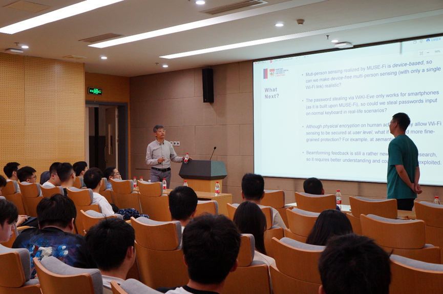 罗教授的报告聚焦通信安全领域前沿,与大家共同探讨在Wi-Fi感知领域的安全发展前景,开阔了学生们的学术视野。