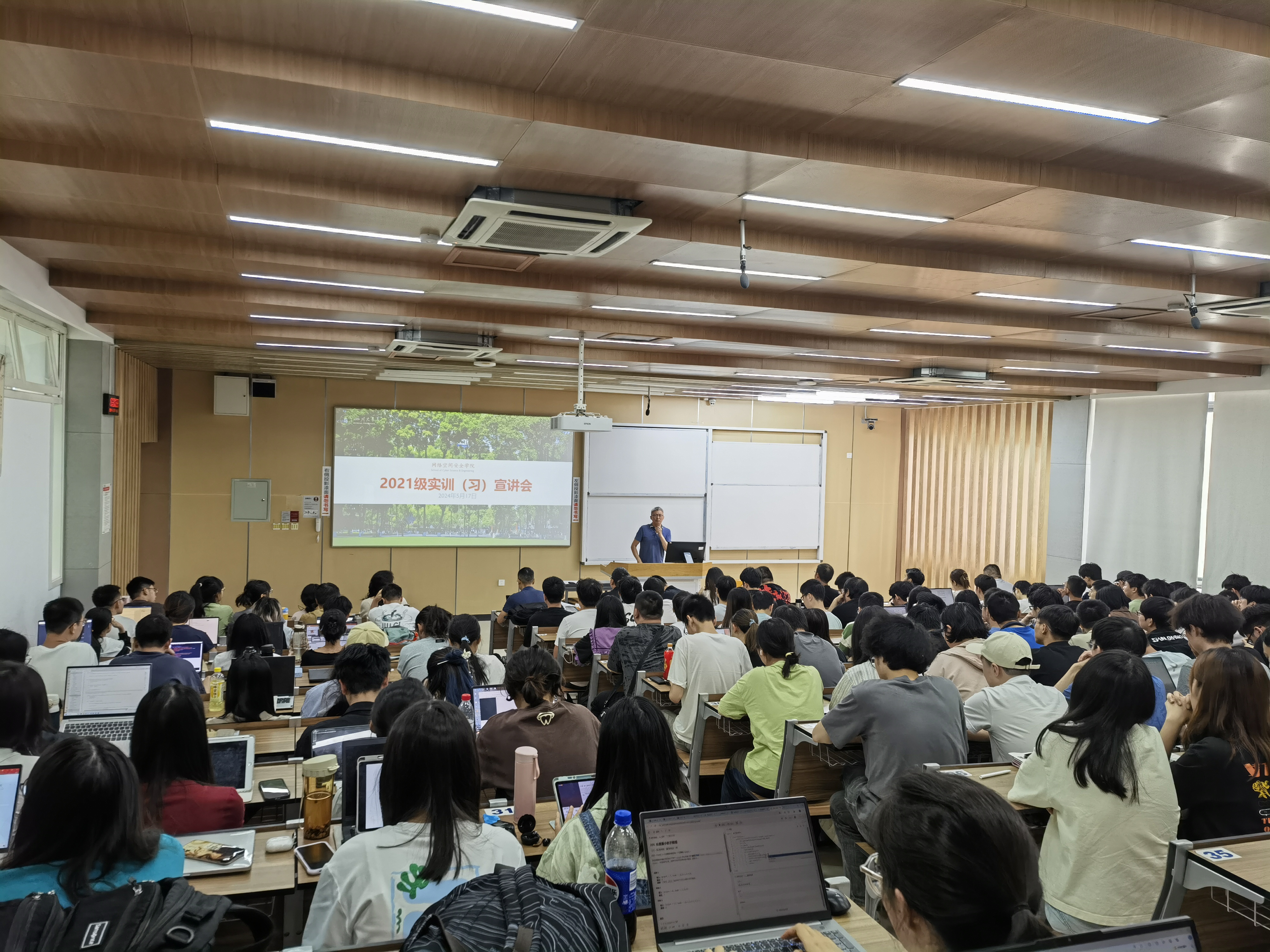 首先,杨院长为同学们作行前动员会,对网安实训的意义做了简单的介绍,强调了实践作为人才培养必要环节的重要性,并对同学们关心的本次实训的相关安排和具体要求做了一一解答。