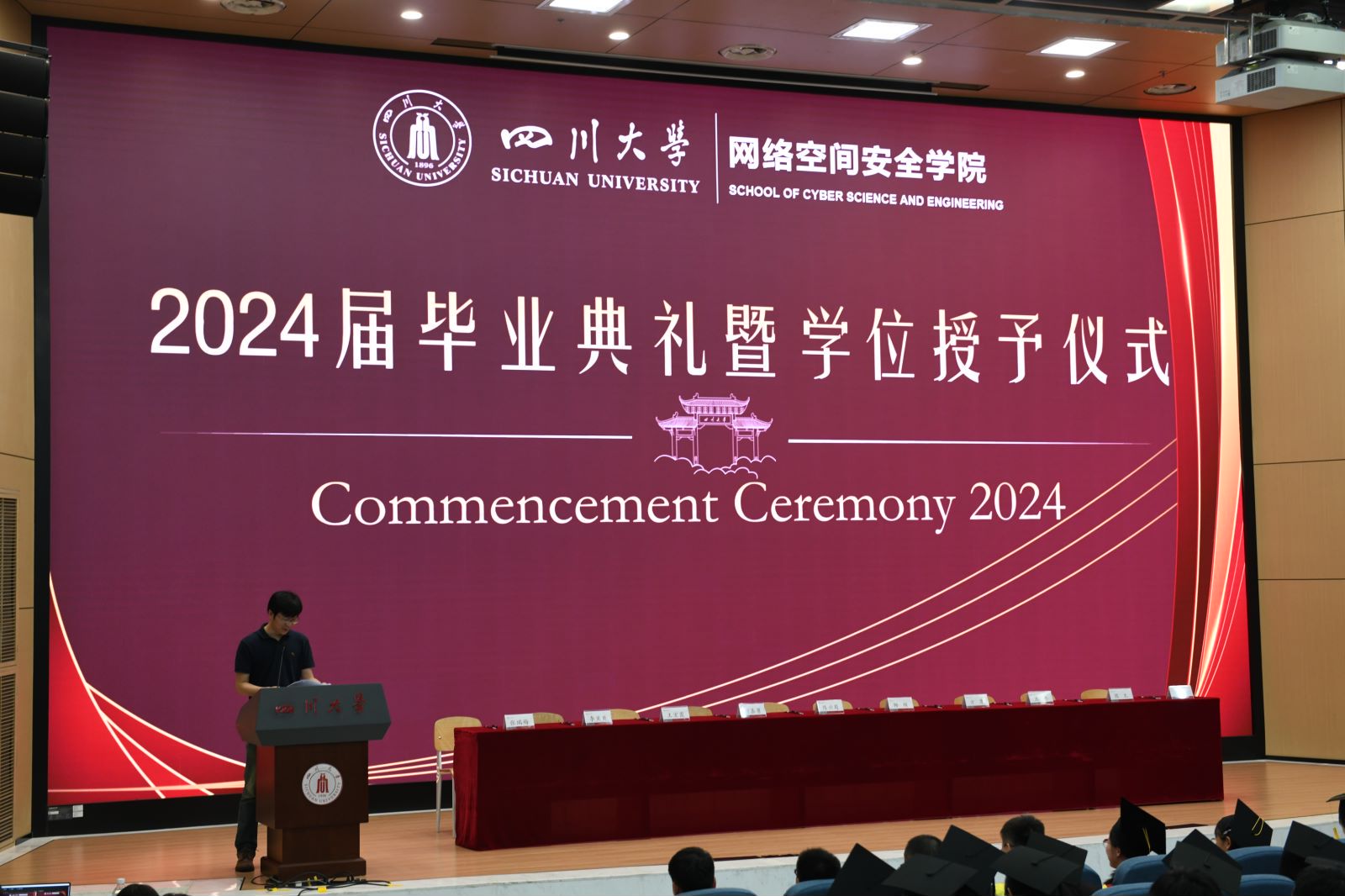 2024年6月20日下午,永利集团88304官网2024届学生毕业典礼暨学位授予仪式于江安校区水上报告厅隆重举行。学院党总支书记秦燕、院长陈兴蜀、副院长杨频以及多位教师代表出席活动。