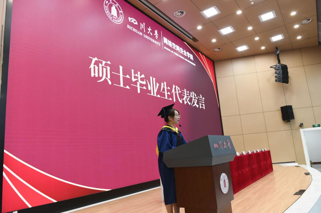 接下来,学院教师代表王宏霞教授发言,她表达了对毕业生们真挚的祝福,同时,她也希望毕业生们能够保持对知识的热爱和追求,不断提升自己的能力,为网络安全领域的发展做出更大的贡献。
