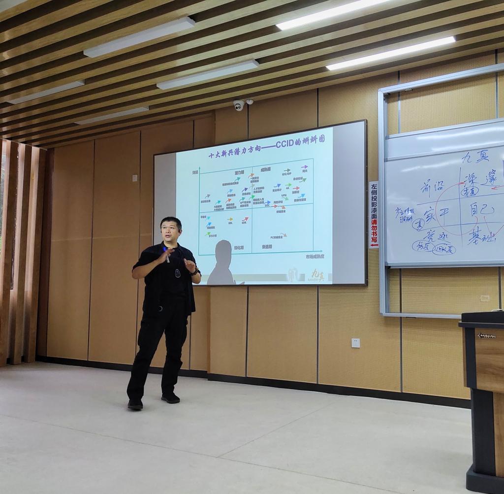 随后,潘老师围绕话题“质疑与思考”展开了此次讲座。他明确指出,网安专业的学生最不能缺少的就是一颗敢于质疑的心。在接下来的讲座中,他与同学们详细地分享了他对于网络安全专业领域的认识与思考,并给出了切实的建议。他通过一张九真图,将讲座分成了自己、价值、环境、竞逐、实干、前沿、深邃、理略、基础九个部分,并介绍了通过个人思考归纳出的两个专业人才成长路径:第一种是经由环境,奠定基础,参与竞逐,通过实干来进行实践,走向前沿并逐步接触专业本质的学术型人才的成长;第二种则是经由环境,定义价值,出谋划策后逐步接触专业本质的理论型人才的成长。讲座最精华的部分在于九真图中的“基础”部分。在这个部分中,潘老师深入浅出地讲述了学习网安必不可少的六门关键技术,分别为:系统、网络、数据、编程、密码学、硬件。潘老师就其了解的部分,将业界实例与课堂相结合,以生动的方式给出了独到的学习建议。譬如,潘老师通过小彩旗春晚上连续旋转数小时的例子告诉我们,水桶效应放到个人身上,就意味着我们在保住底的情况下,要将自己的长板发挥到极致。这些都对刚步入大学的同学们起到了启发和导向的作用。