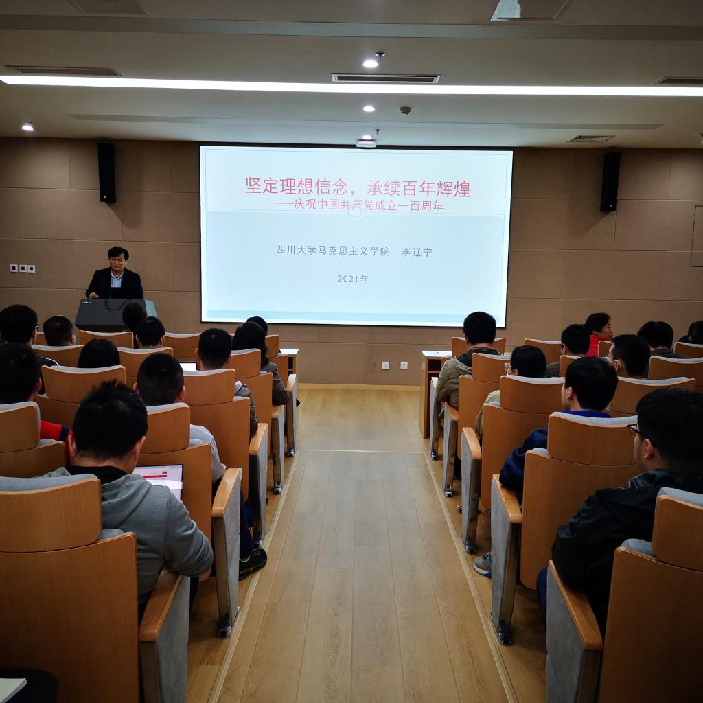 报告会上,李辽宁教授紧扣宣讲主题,围绕建党100周年的历史回溯、百年辉煌的密码解析、百年辉煌的承续要义和承续辉煌的实践路径展开宣讲。报告既有理论高度,又有很强的现实指导性,视野开阔、分析透彻,其间包含了大量党的历史典故、红色故事、历史人物等,精彩生动、深入浅出,为学院更好地推进党史学习教育提供了及时有力的指导和帮助。